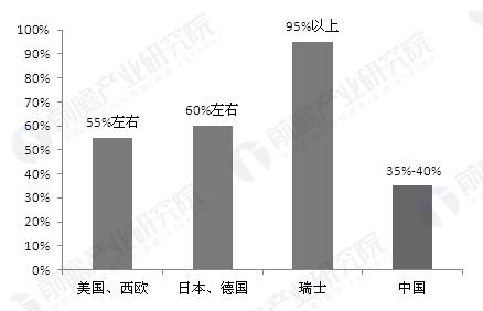 我國&國外精細化率對比(單位:%)